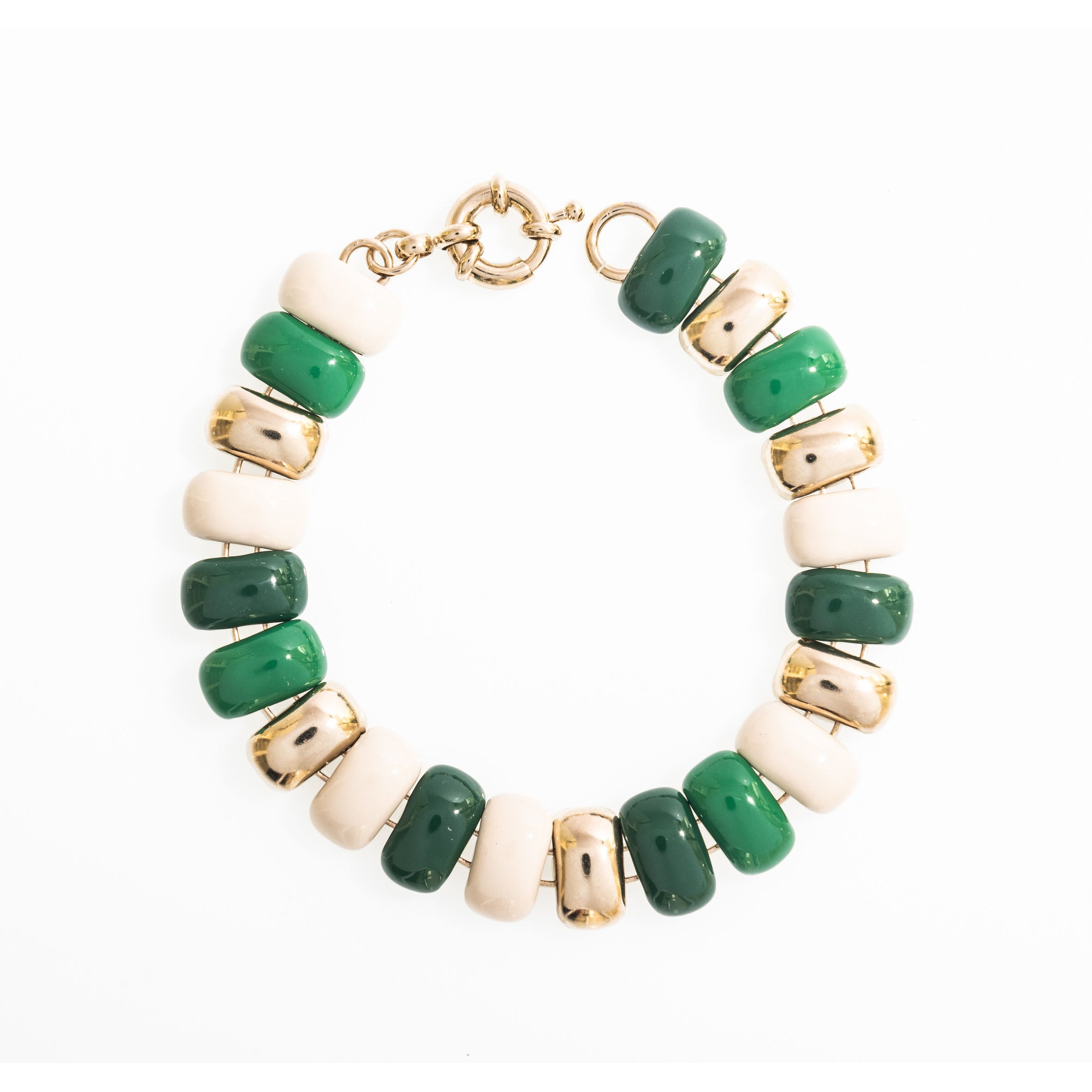 Materiale Ottone. Finitura Dorato con smalti Verde/Panna